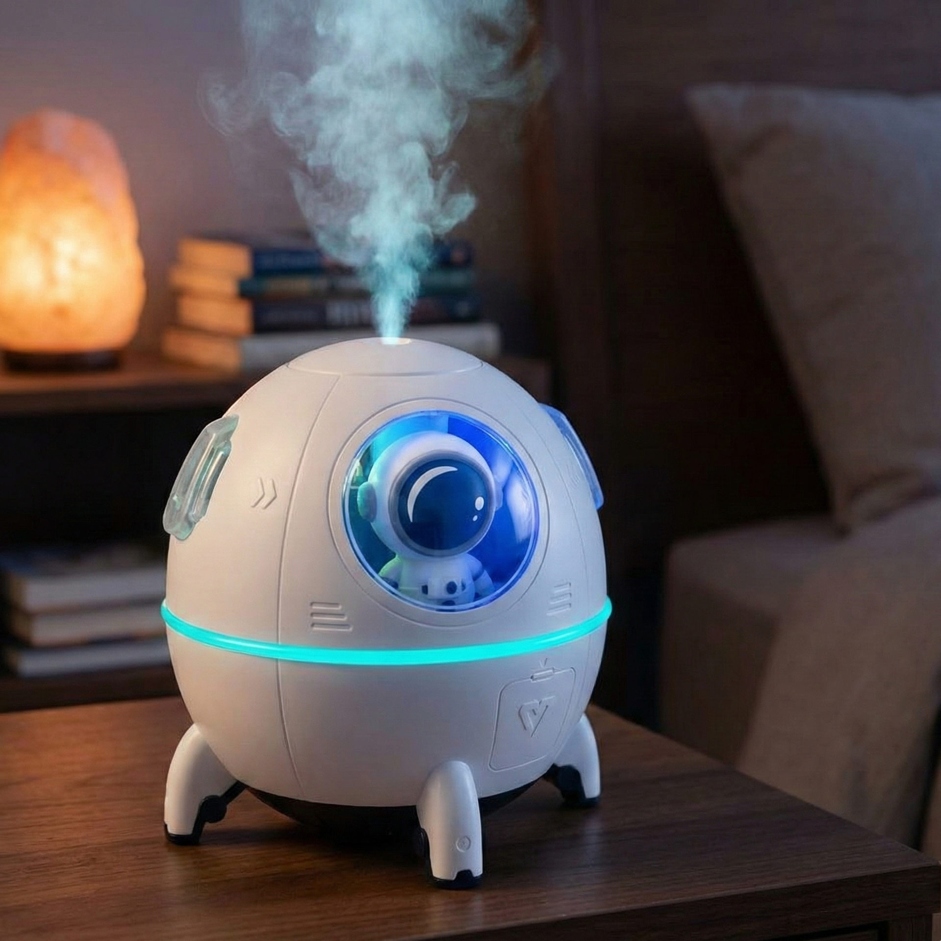 Además de combatir la sequedad ambiental, funciona como una relajante luz de noche gracias a su iluminación LED integrada. Es el compañero perfecto para la mesita de noche o el escritorio, creando una atmósfera galáctica y acogedora que invita a soñar mientras respiras un aire fresco y limpio.